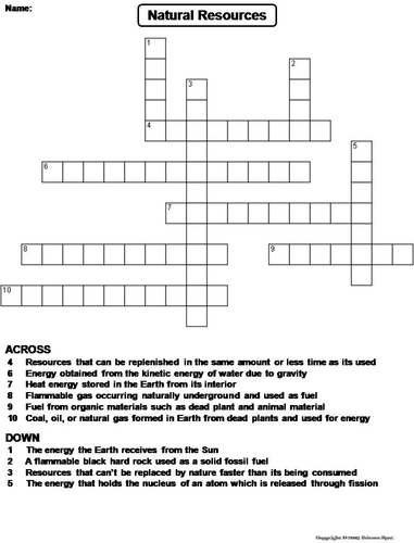 Natural Resources Crossword Puzzle Renewable and nonrenewable natural