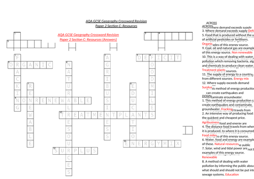 AQA GCSE Geography Revision: Paper 2 Natural Resources Crossword