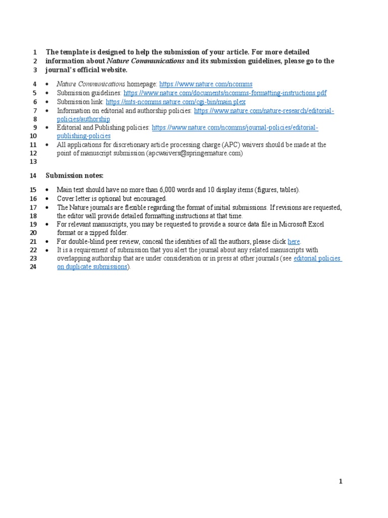 Nature Communications Article Template Free Template AJE