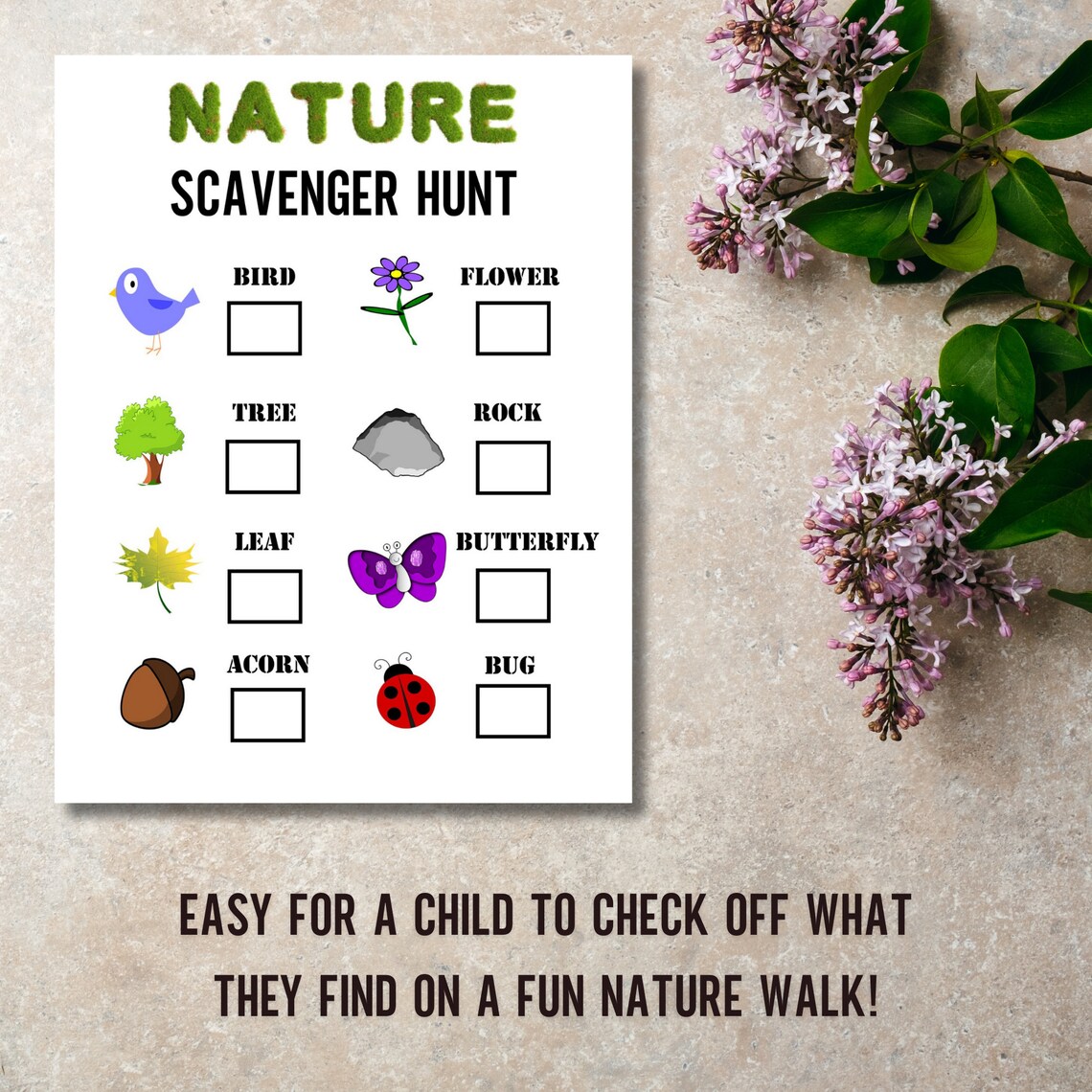 Nature Scavenger Hunt for Kids Printable Instant Download Flowers