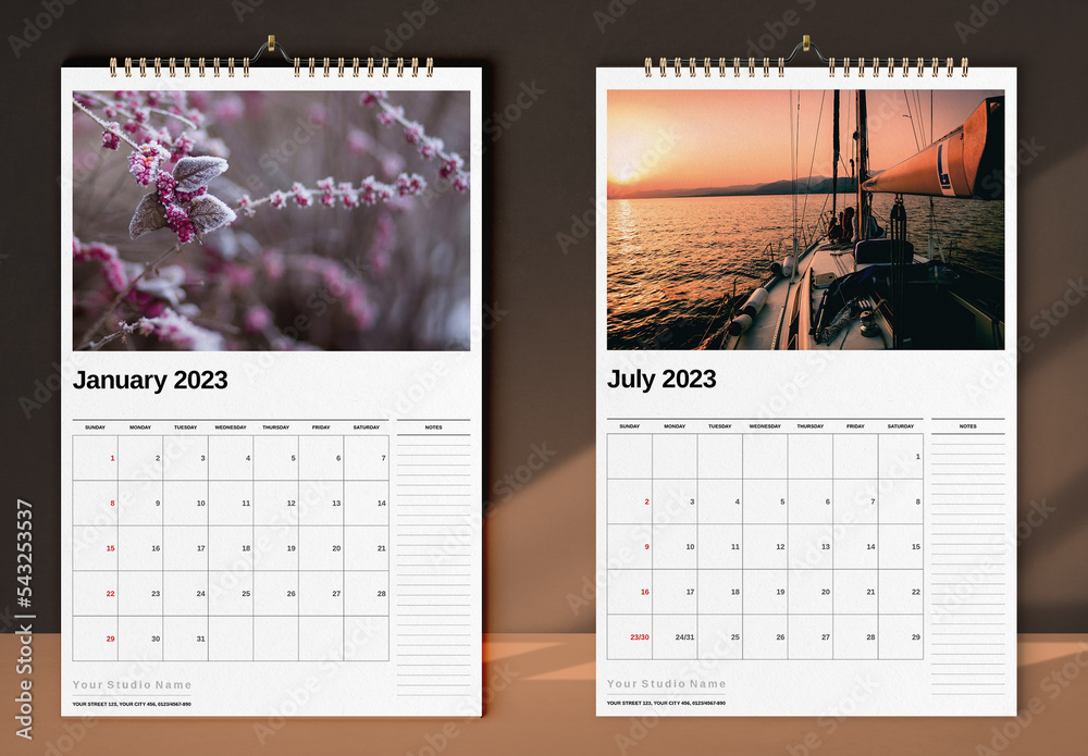 Nature Wall Calendar 2023 Layout Stock Template Adobe Stock