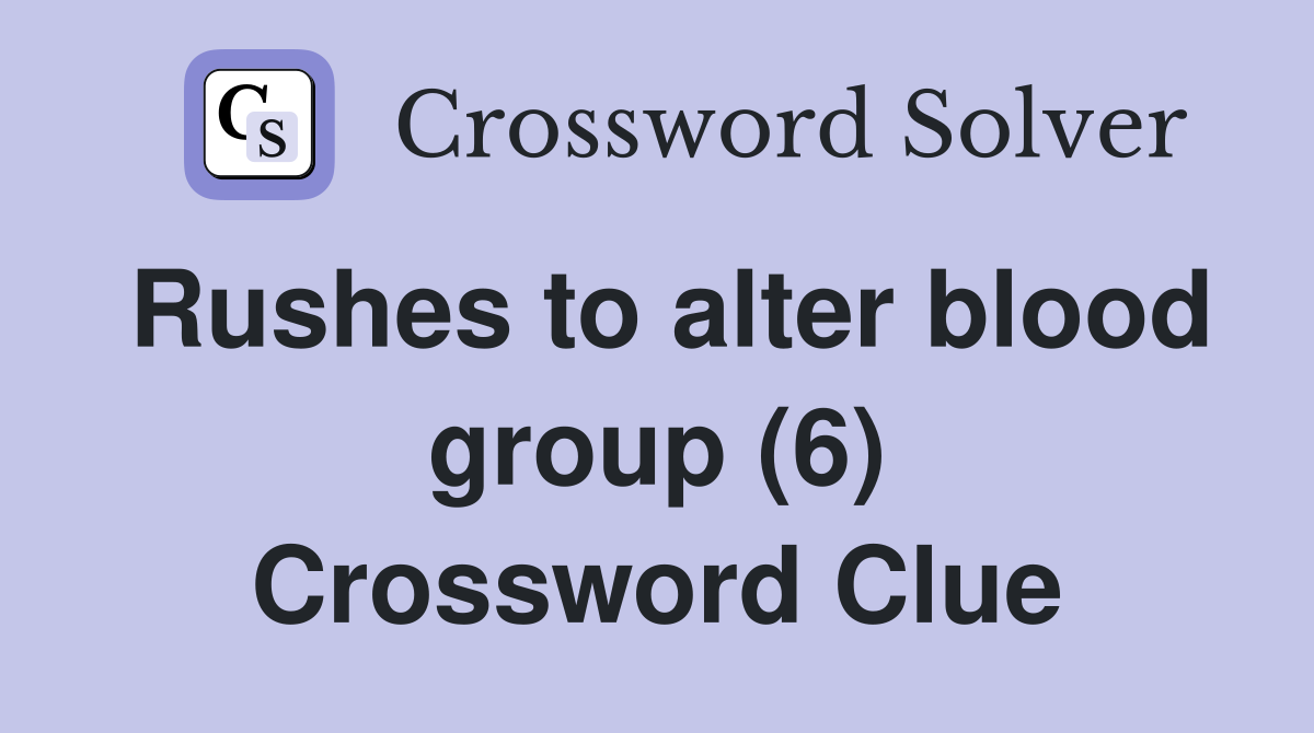 Rushes to alter blood group (6) Crossword Clue Answers Crossword Solver