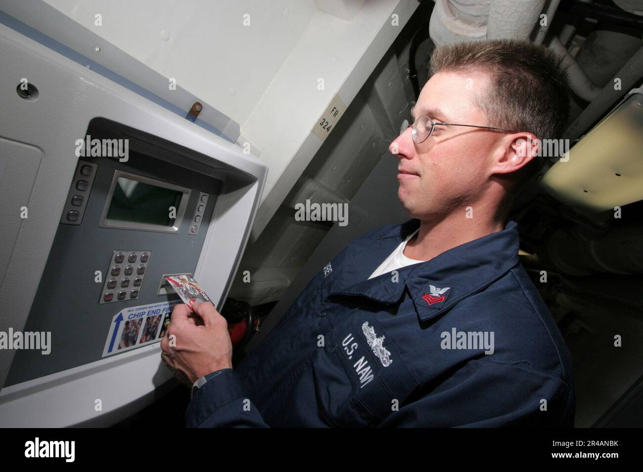 US Navy Disbursing Clerk 1st Class inserts his Navy Cash Card in a K80