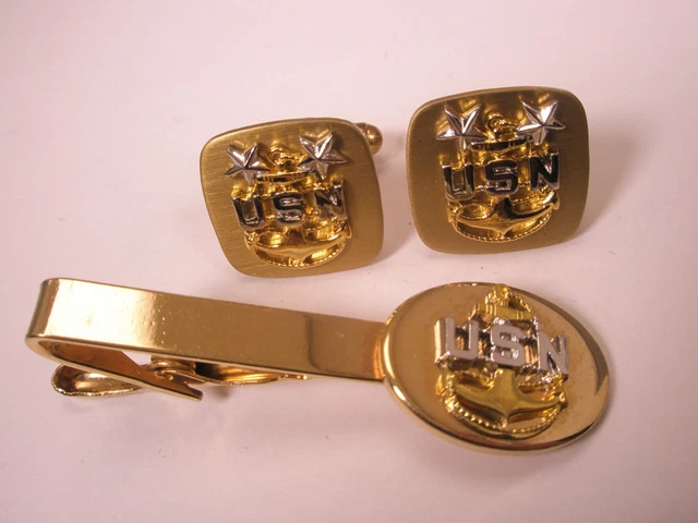 US NAVY MASTER Chief Petty Officer Vintage Cuff Links USN Navy Tie