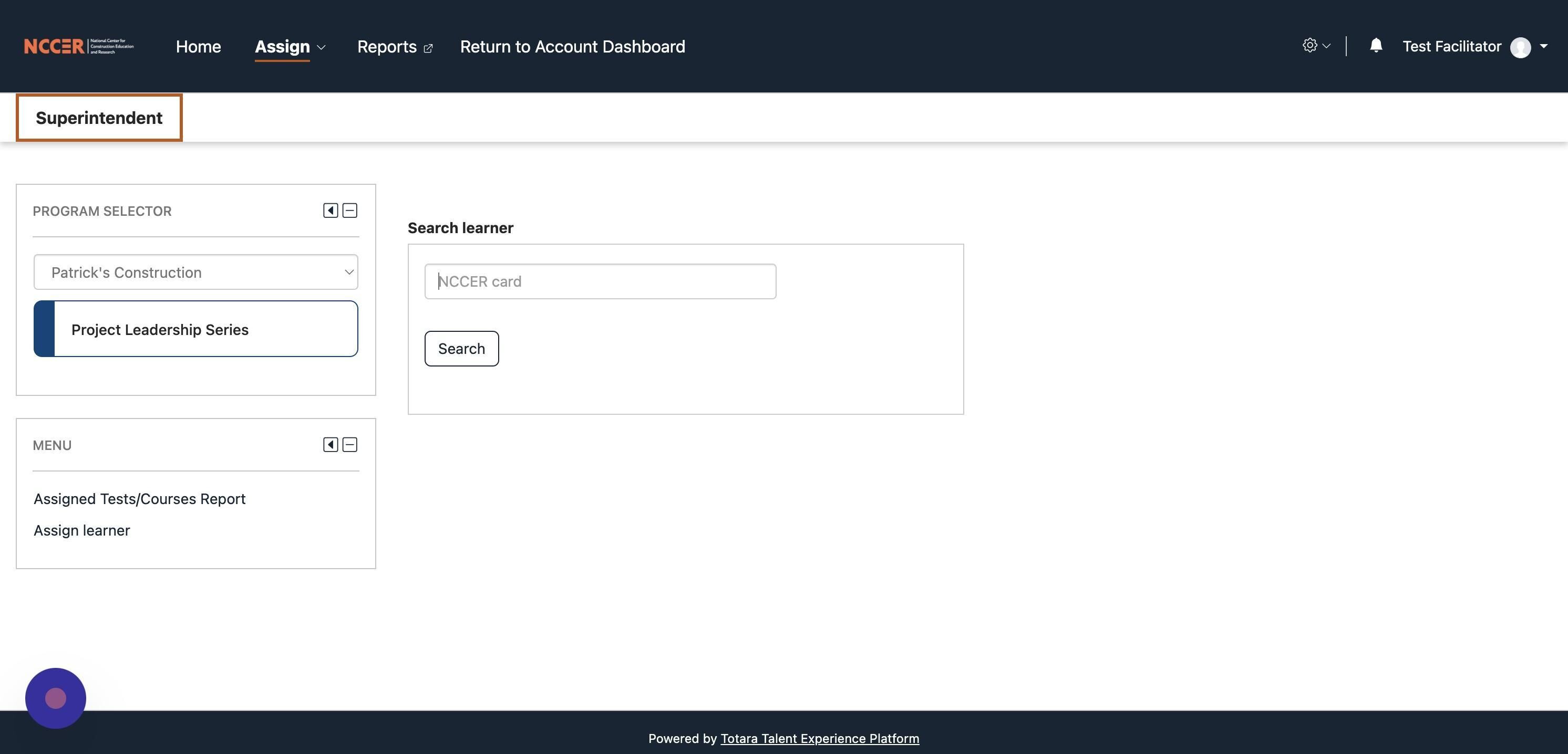 Facilitator: Assigning a Learner to the Construction Superintendent