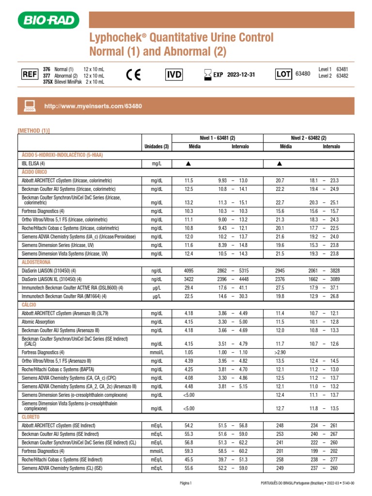 Lyphochek Quantitative Urine Control Normal (1) and Abnormal PDF