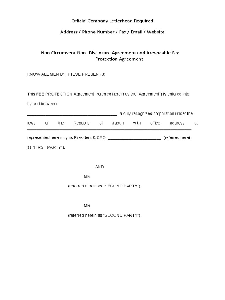 Non Circumvention And Non Disclosure Agreement (NCNDA) Template Freshdox