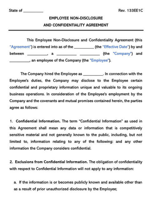 Free Employee Non Disclosure Agreement (NDA) Template PDF Word eForms
