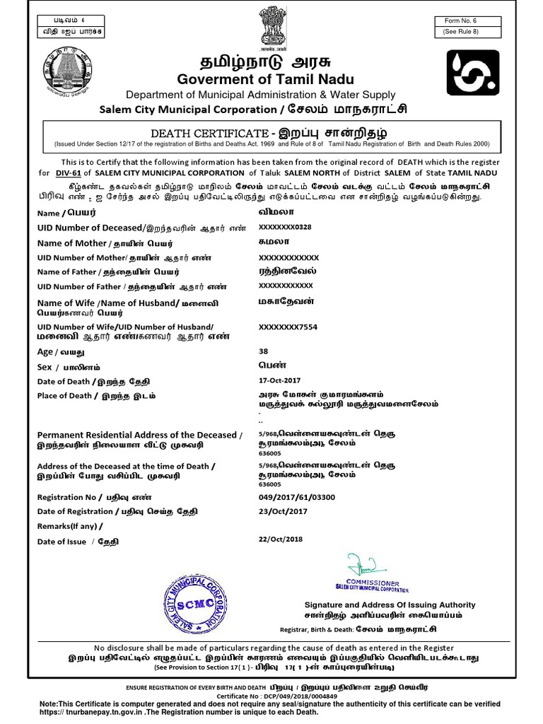 DeathCertificateTamil CP pdf Death Certificate Government Information