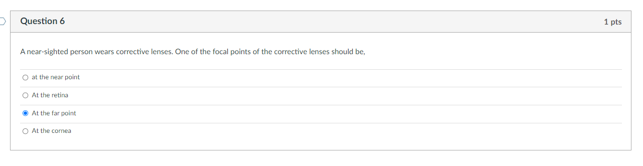 Solved A near sighted person wears corrective lenses One of Chegg com