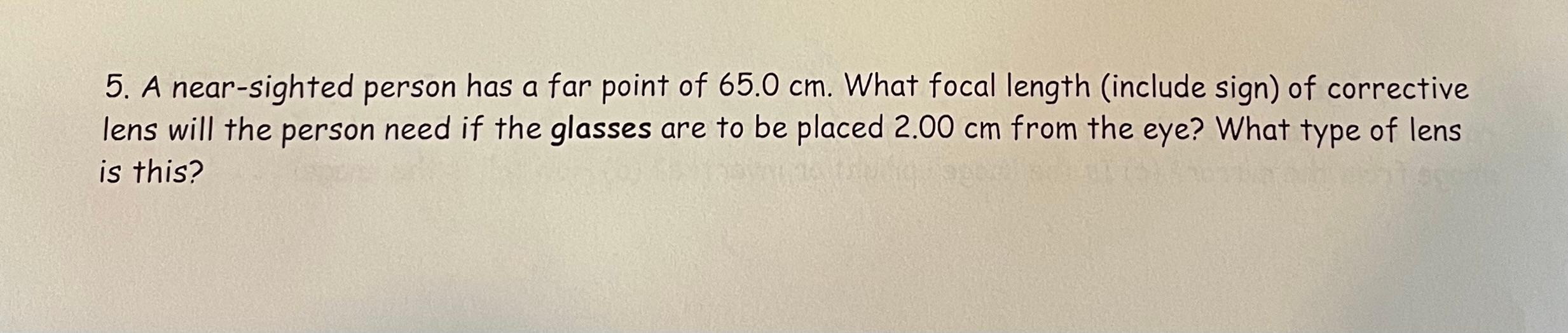 Solved 5 A near sighted person has a far point of 65 0 cm Chegg com