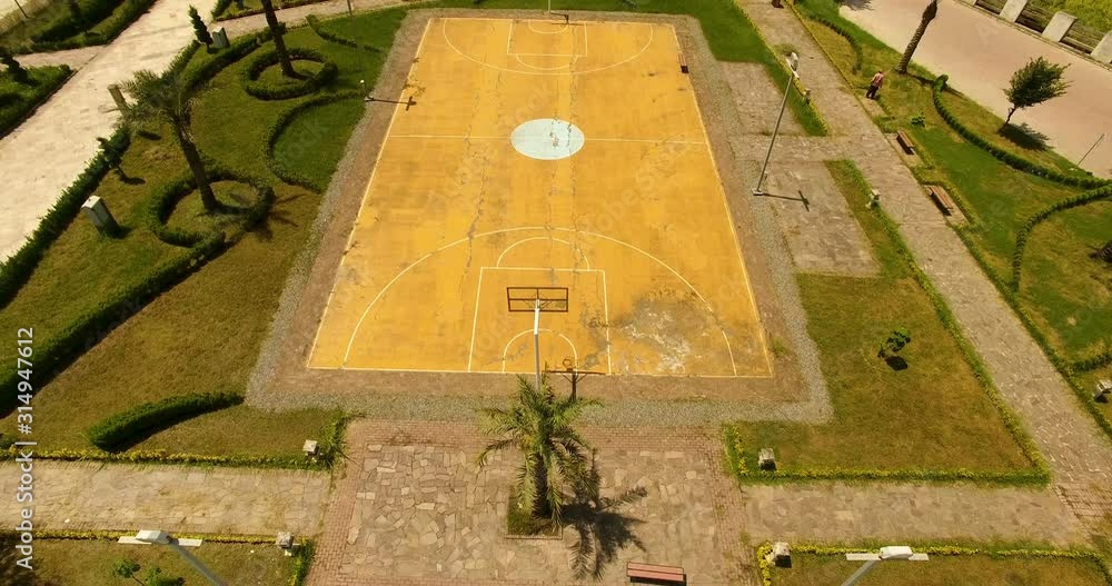 Public Basketball Court And Skate Park Tops Down Aerial View Photo