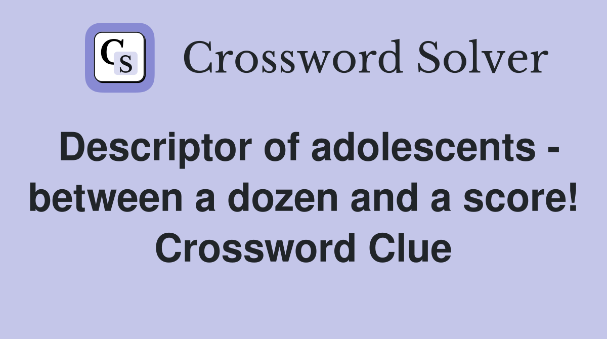 Descriptor of adolescents between a dozen and a score Crossword