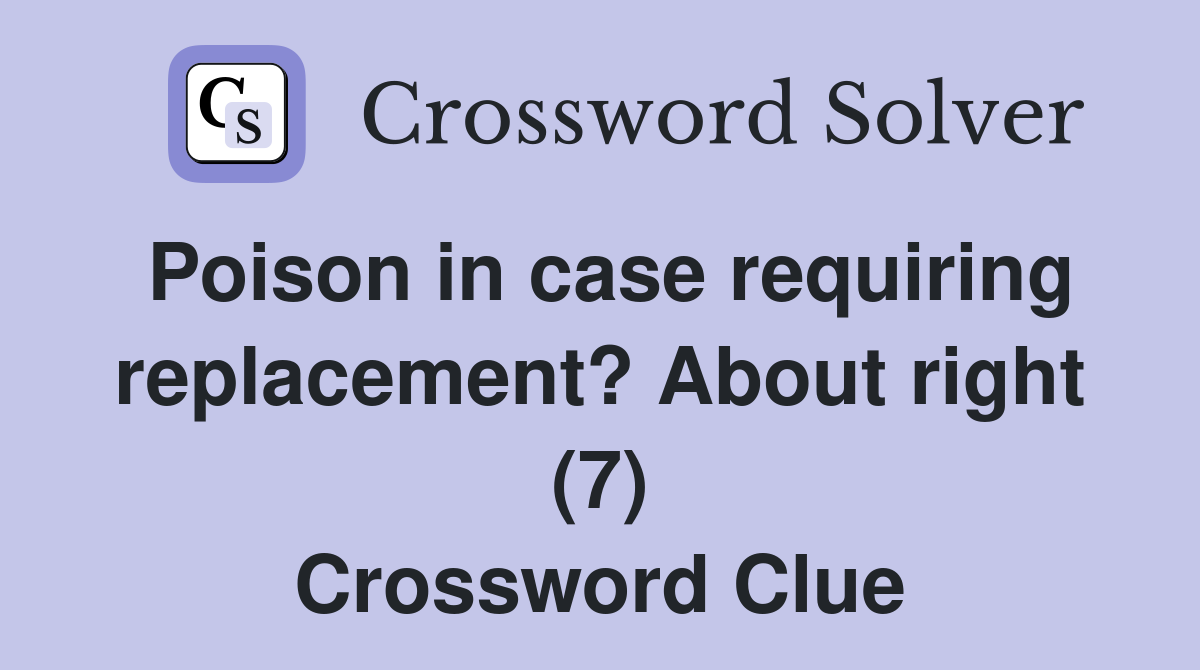 Poison in case requiring replacement? About right (7) Crossword Clue