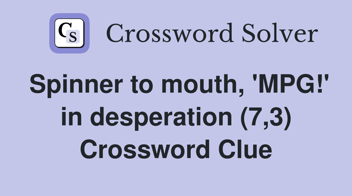 Spinner to mouth #39 MPG #39 in desperation (7 3) Crossword Clue Answers