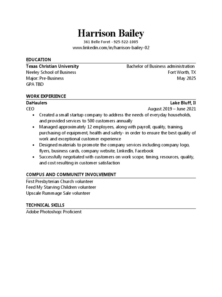 Résumé Review Neeley School of Business