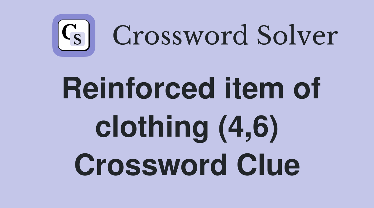 Reinforced item of clothing (4 6) Crossword Clue Answers Crossword