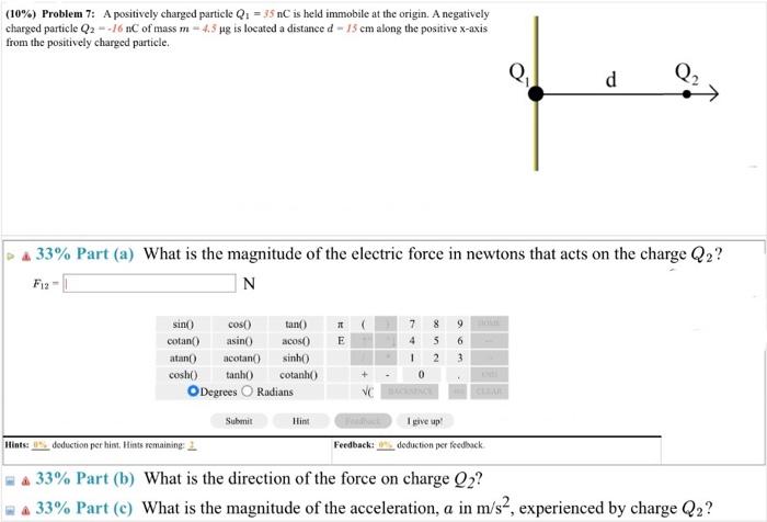 Solved (10 #92 %) Problem 7: A positively charged particle Chegg com