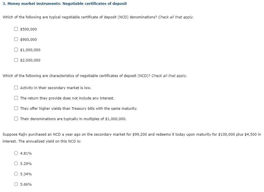 Solved 3 Money market instruments: Negotiable certificates Chegg com