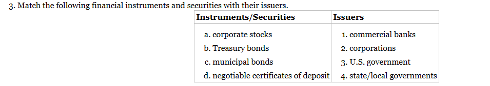 Solved 3 Match the following financial instruments and Chegg com
