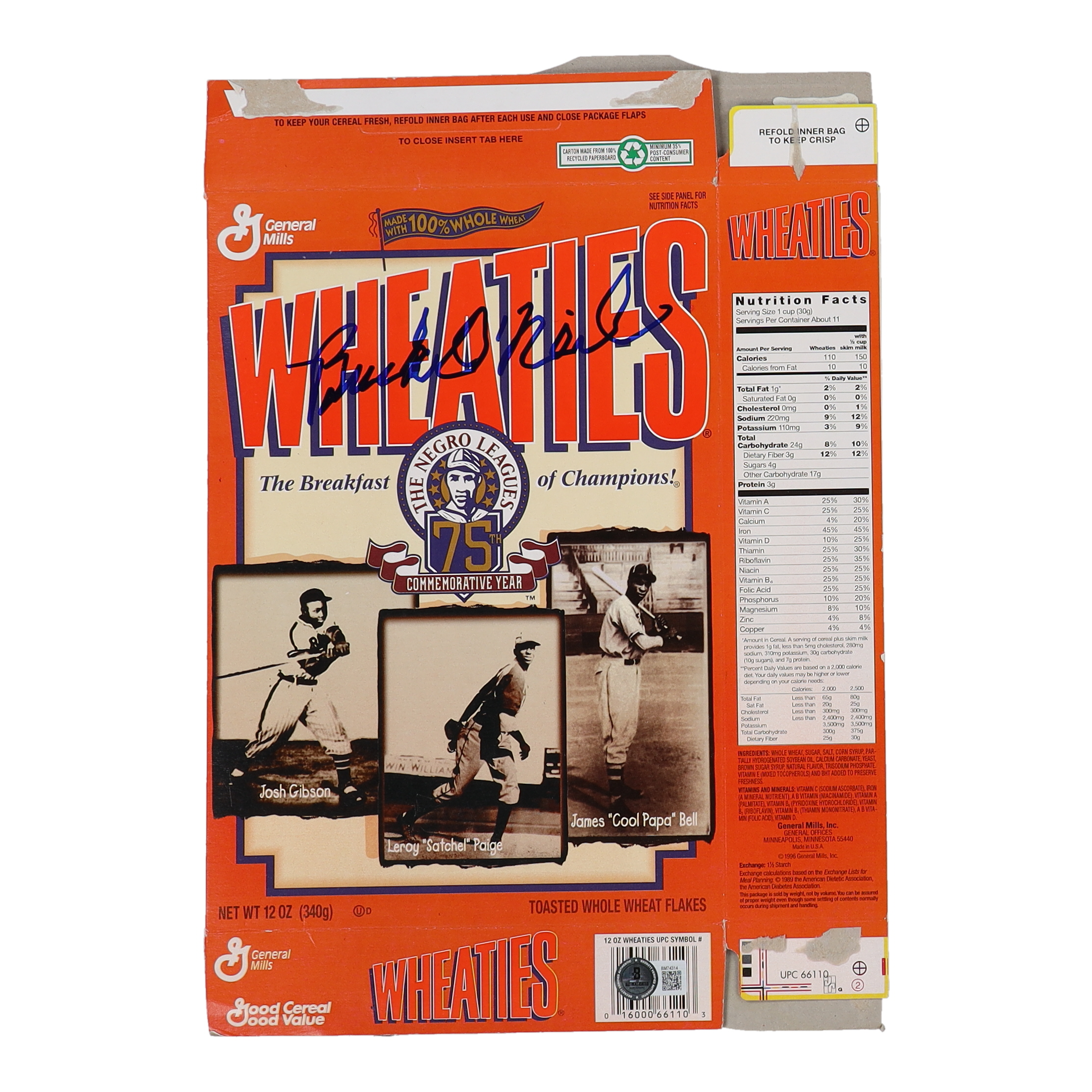Buck O #39 Neil Signed quot The Negro Leagues 75th Commemorative Year quot Wheaties