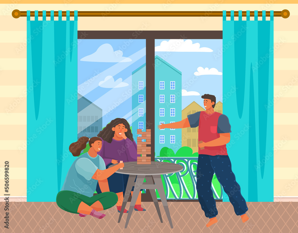 Free Vector People doing leisure activities on balcony