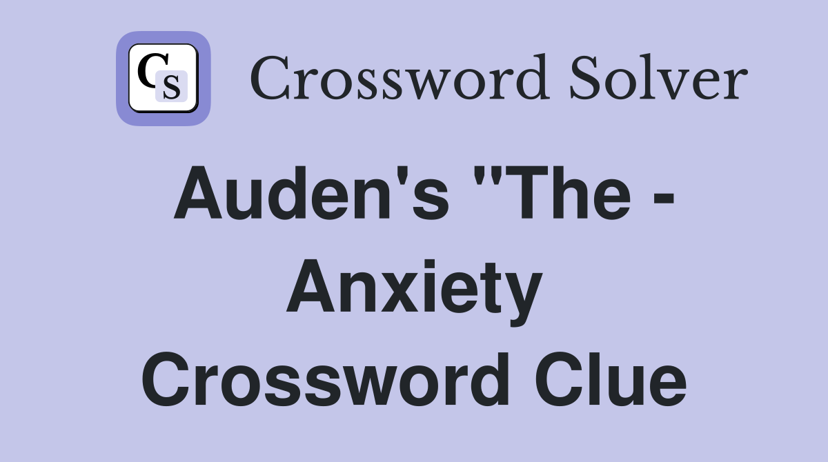 Auden #39 s quot The Anxiety Crossword Clue Answers Crossword Solver
