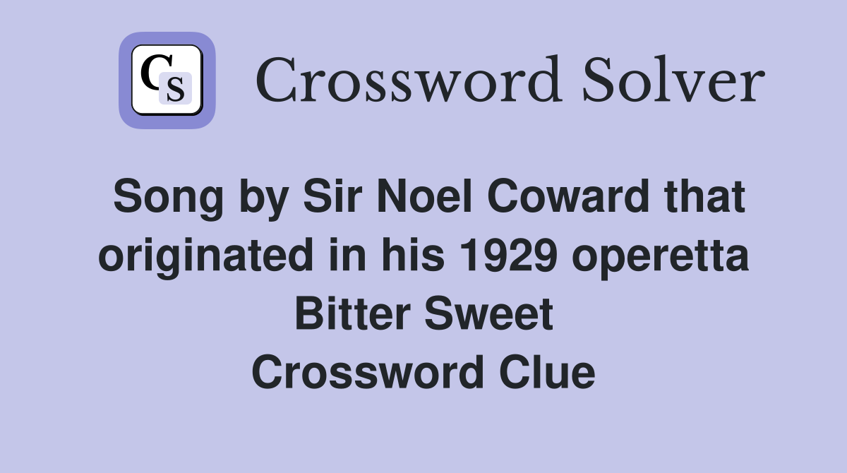 Song by Sir Noel Coward that originated in his 1929 operetta Bitter