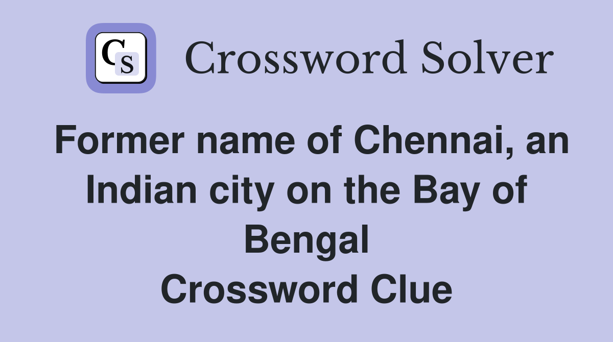 Former name of Chennai an Indian city on the Bay of Bengal Crossword