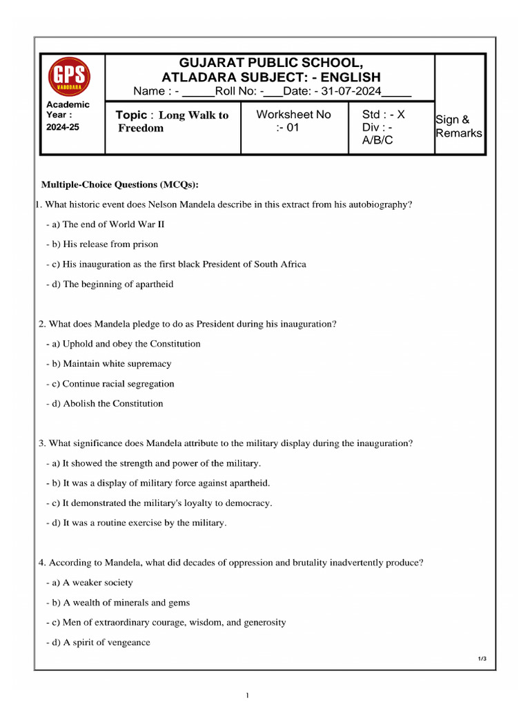 X Nelson Mandela Worksheet 01 PDF