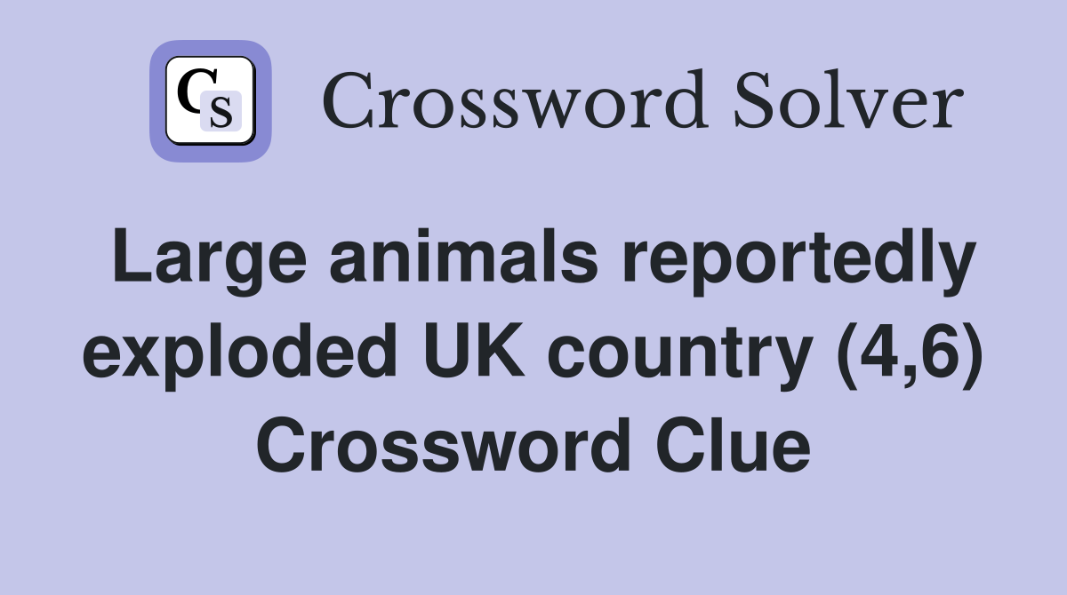 Large animals reportedly exploded UK country (4 6) Crossword Clue