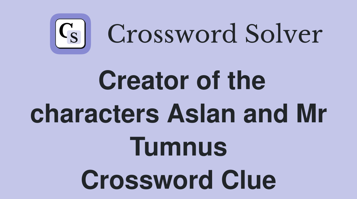 Creator of the characters Aslan and Mr Tumnus Crossword Clue Answers
