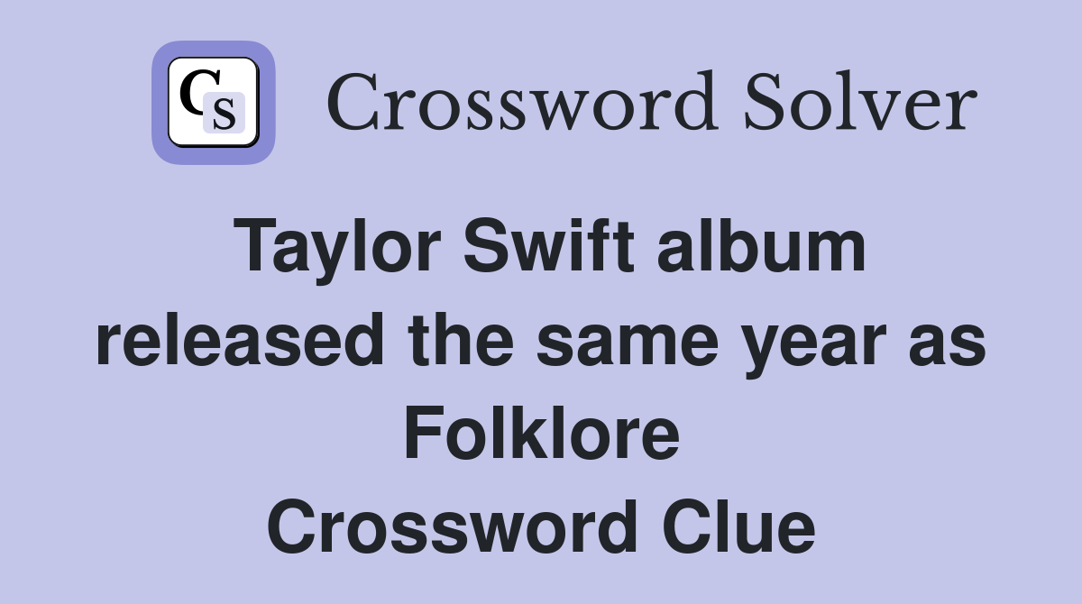 Taylor Swift album released the same year as Folklore Crossword Clue