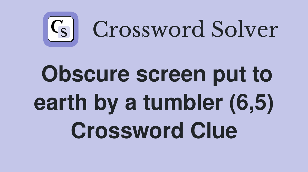 Obscure screen put to earth by a tumbler (6 5) Crossword Clue Answers
