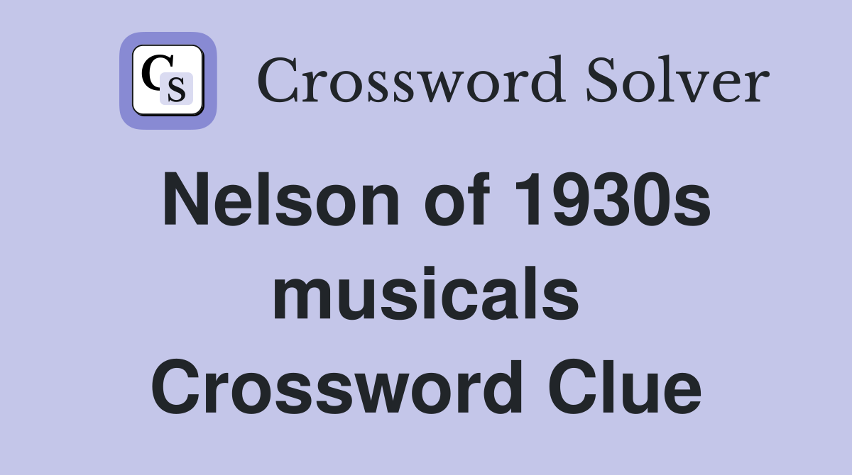 Nelson of 1930s musicals Crossword Clue Answers Crossword Solver