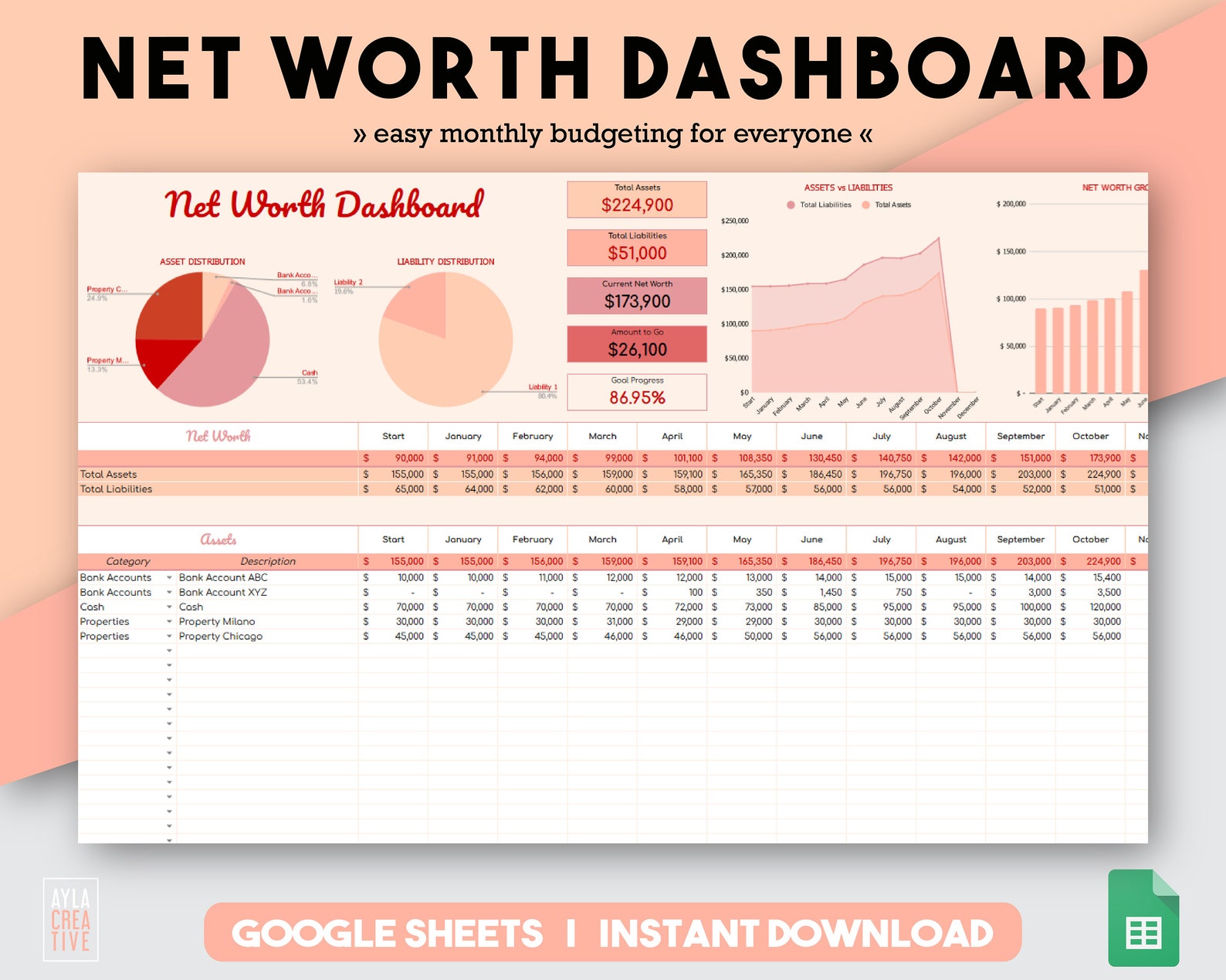 Net Worth Dashboard Net Worth Tracker Spreadsheet Template Net Worth