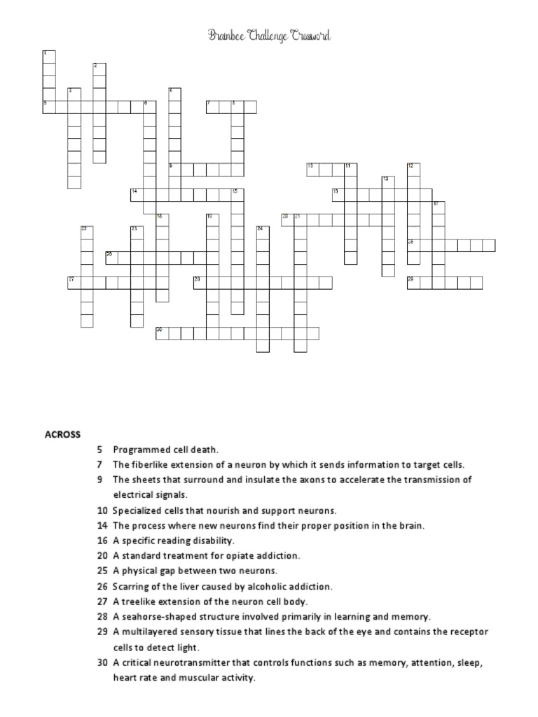 Brainbee Challenge Crossword PDF Neuron Neurotransmitter