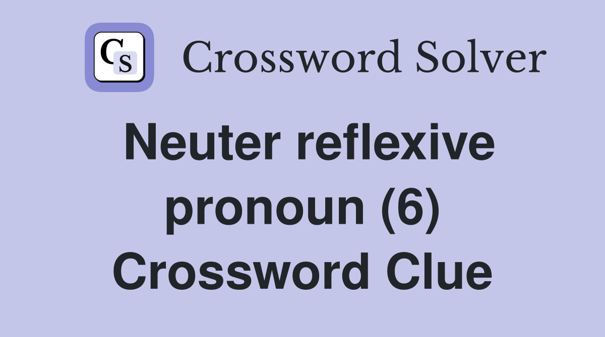 Neuter reflexive pronoun (6) Crossword Clue Answers Crossword Solver