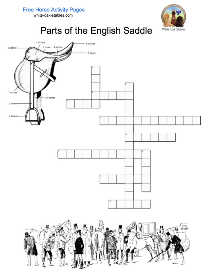 Parts of the Horse Crossword Activity Page White Oak Stables