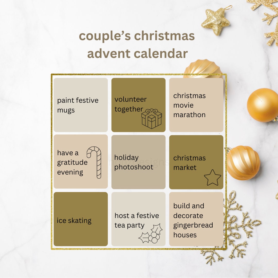 Christmas Couples Neutral Advent Calendar Festive A4 PDF Holiday