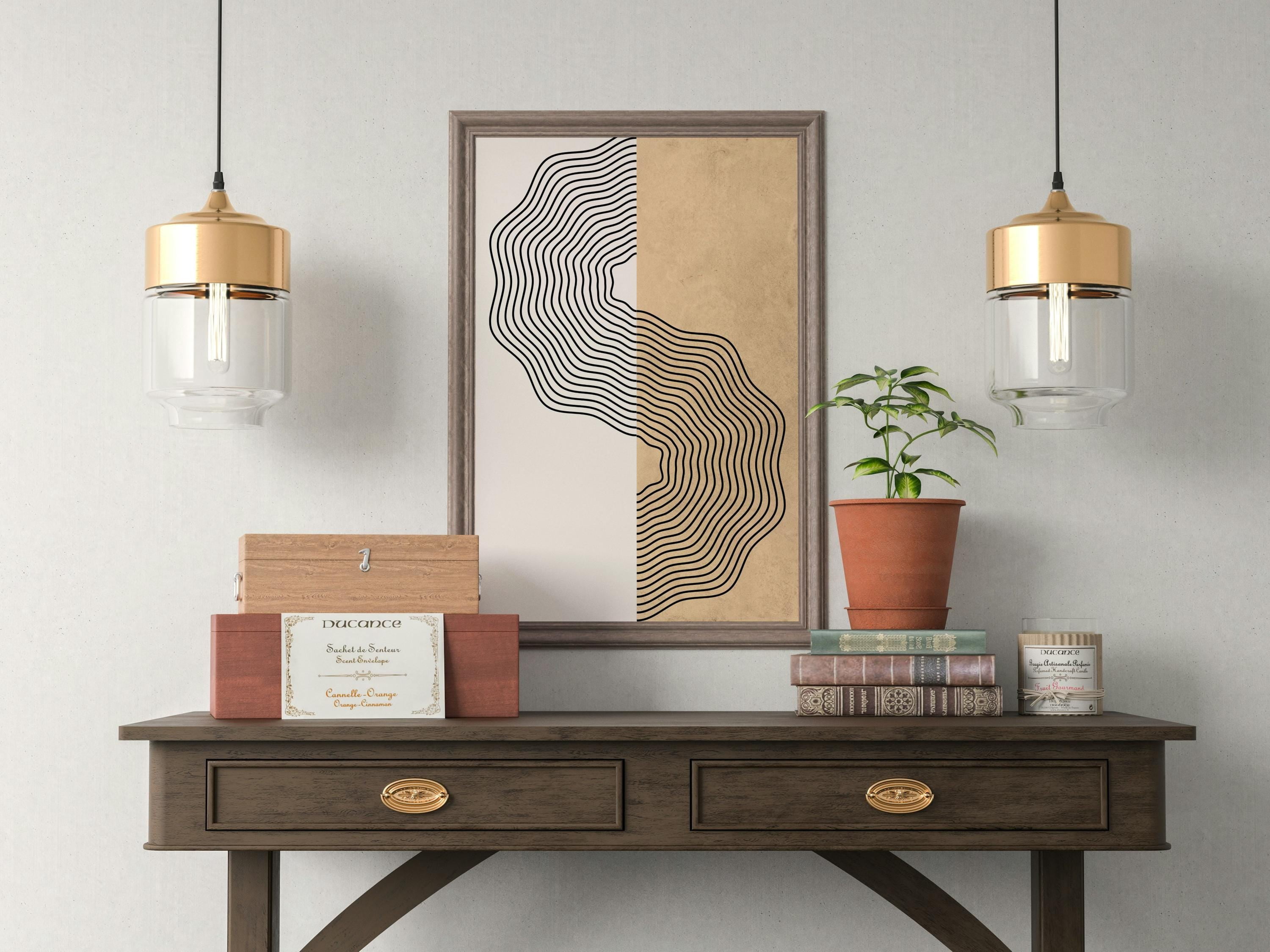 Boho Geometric Wall Art Living Room Poster Minimalist Neutral Wall