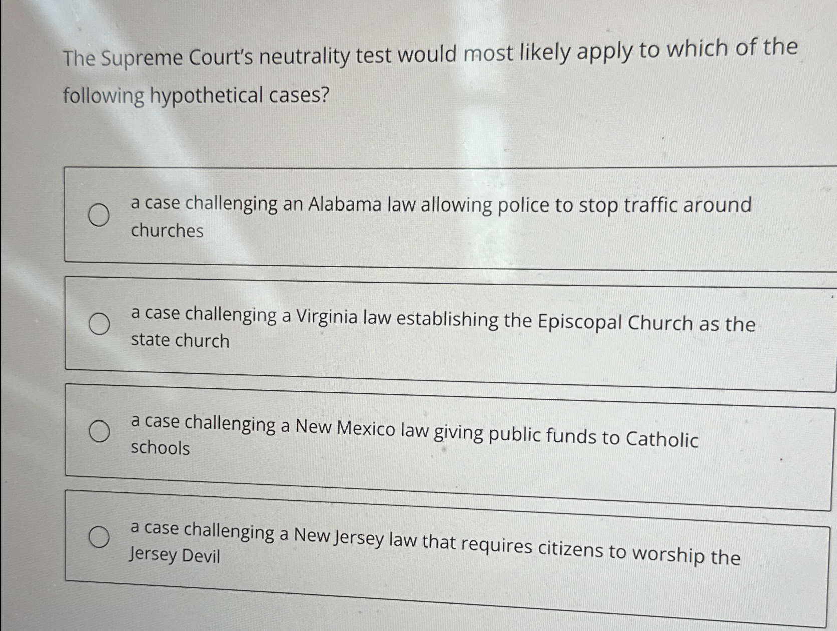 Solved The Supreme Court #39 s neutrality test would most likely Chegg com