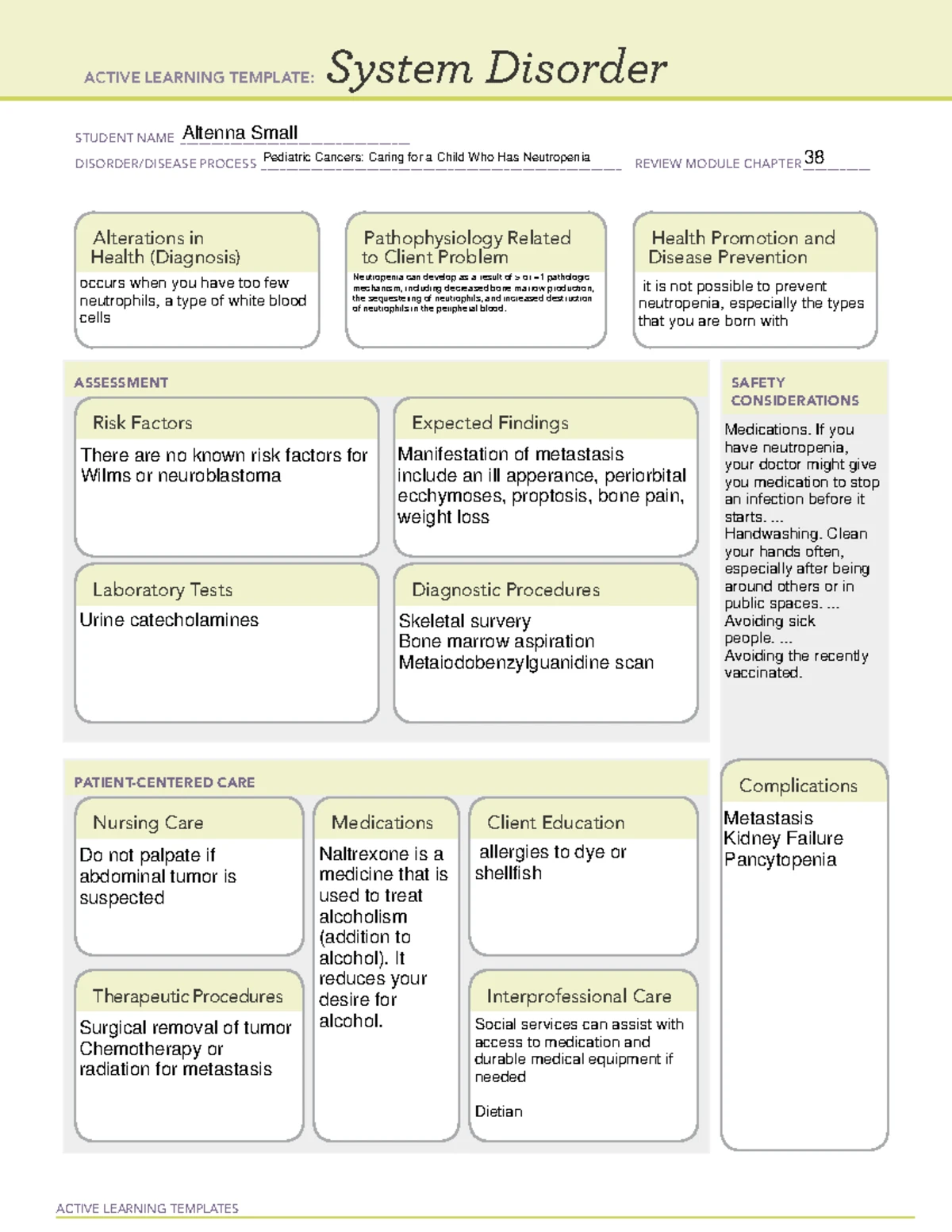 Neurtropenia docx Active Learning Template: System Disorder Disorder