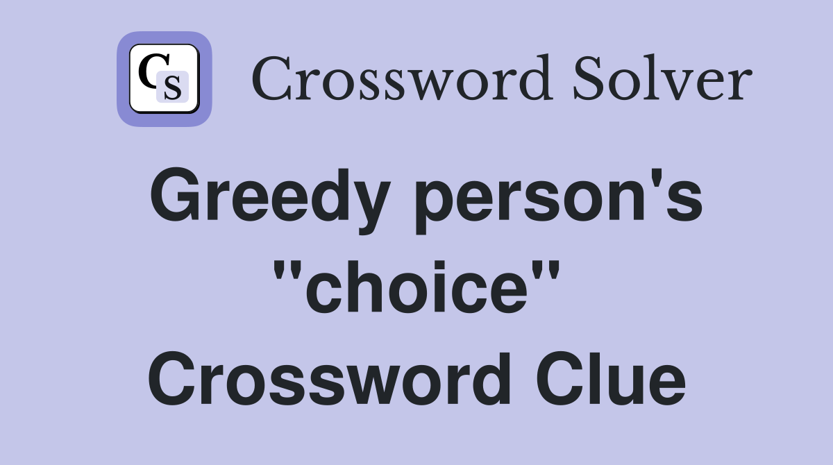 Greedy person #39 s quot choice quot Crossword Clue Answers Crossword Solver