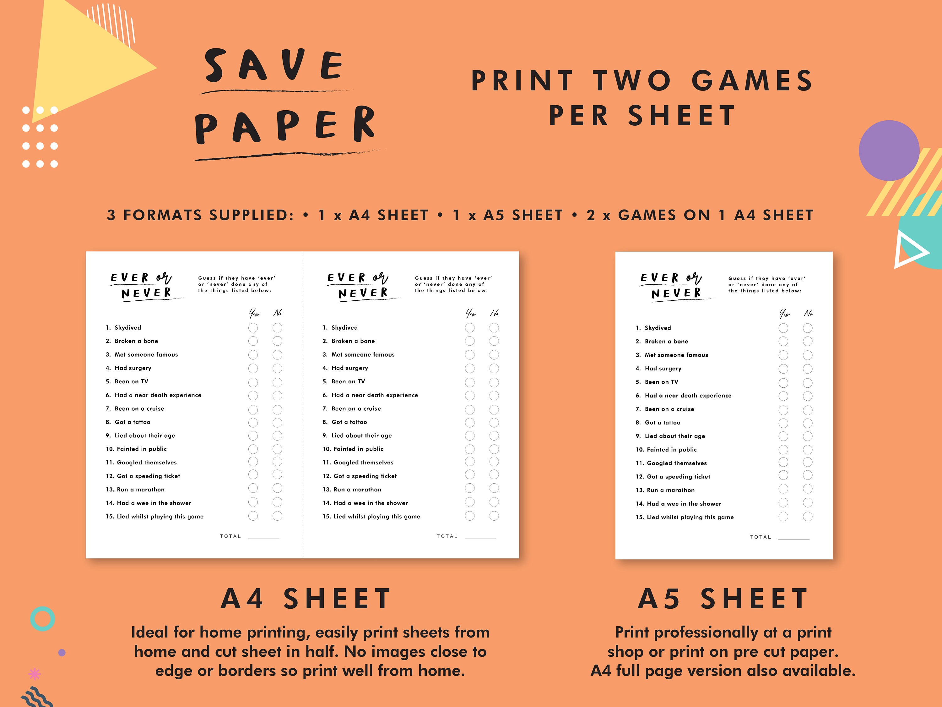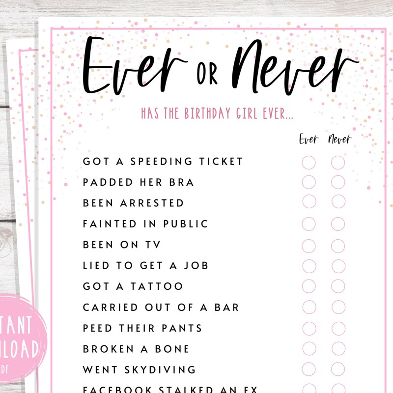 Ever or Never Never Have I Ever Party Games Birthday Games