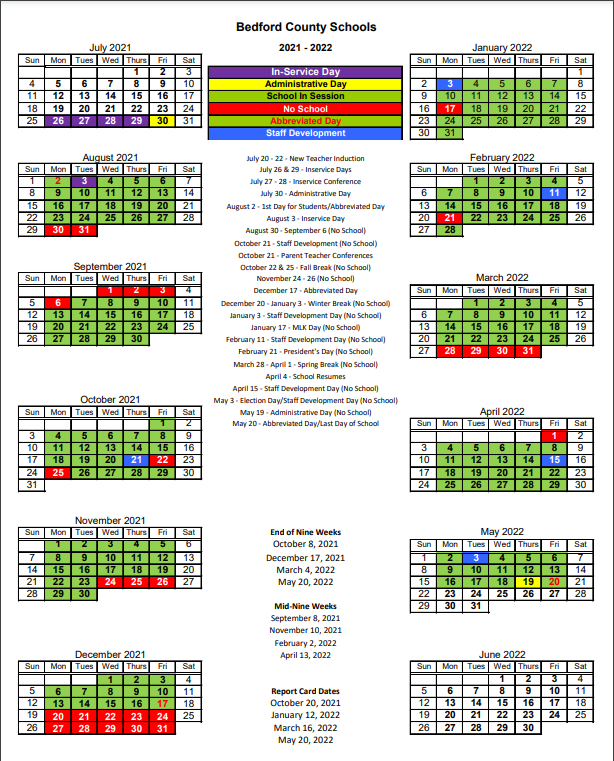 Bedford County Schools Calendar 2025 2026 in PDF School Calendar Info