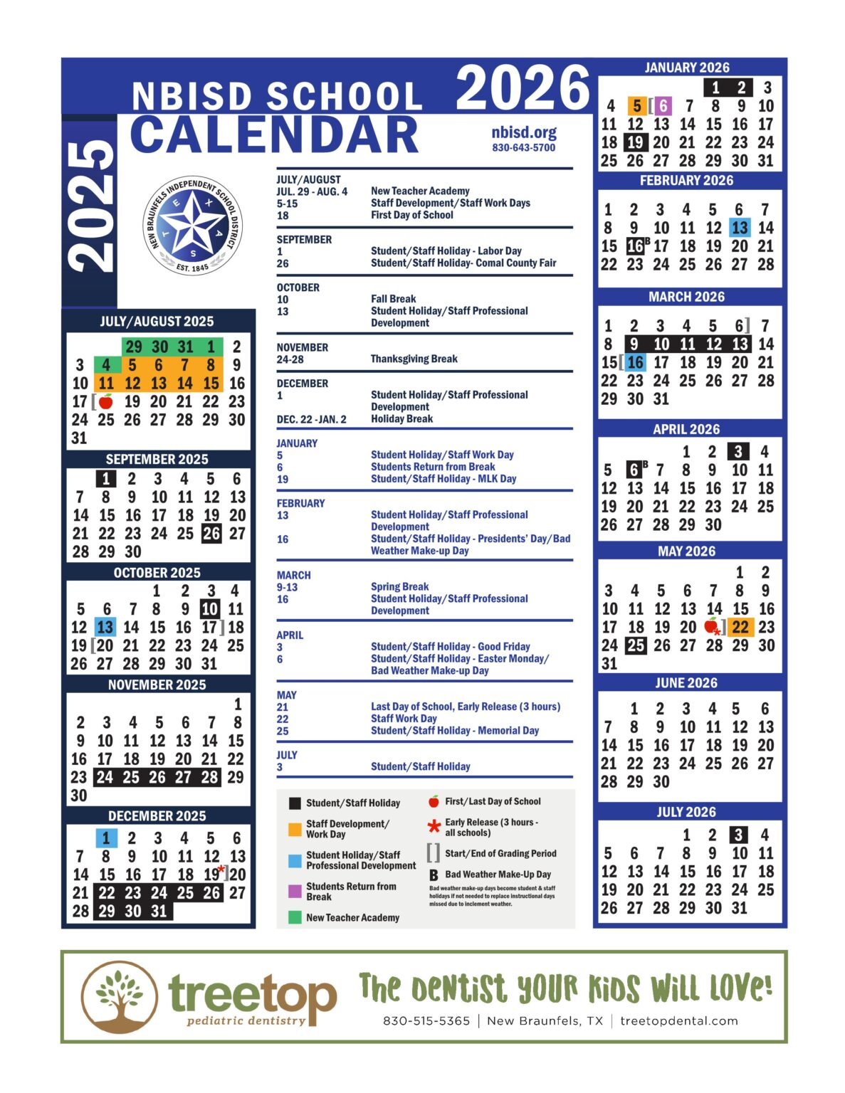New Braunfels NBISD School Calendar 25 26 PDF EduCounty