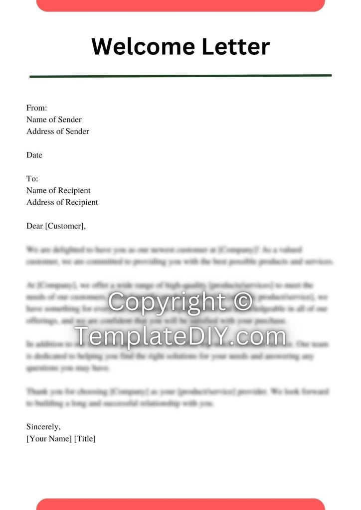 New Customer Welcome Letter Template