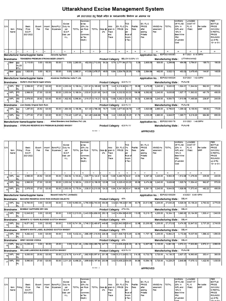 New Approved Rate List PDF Whisky Distillation