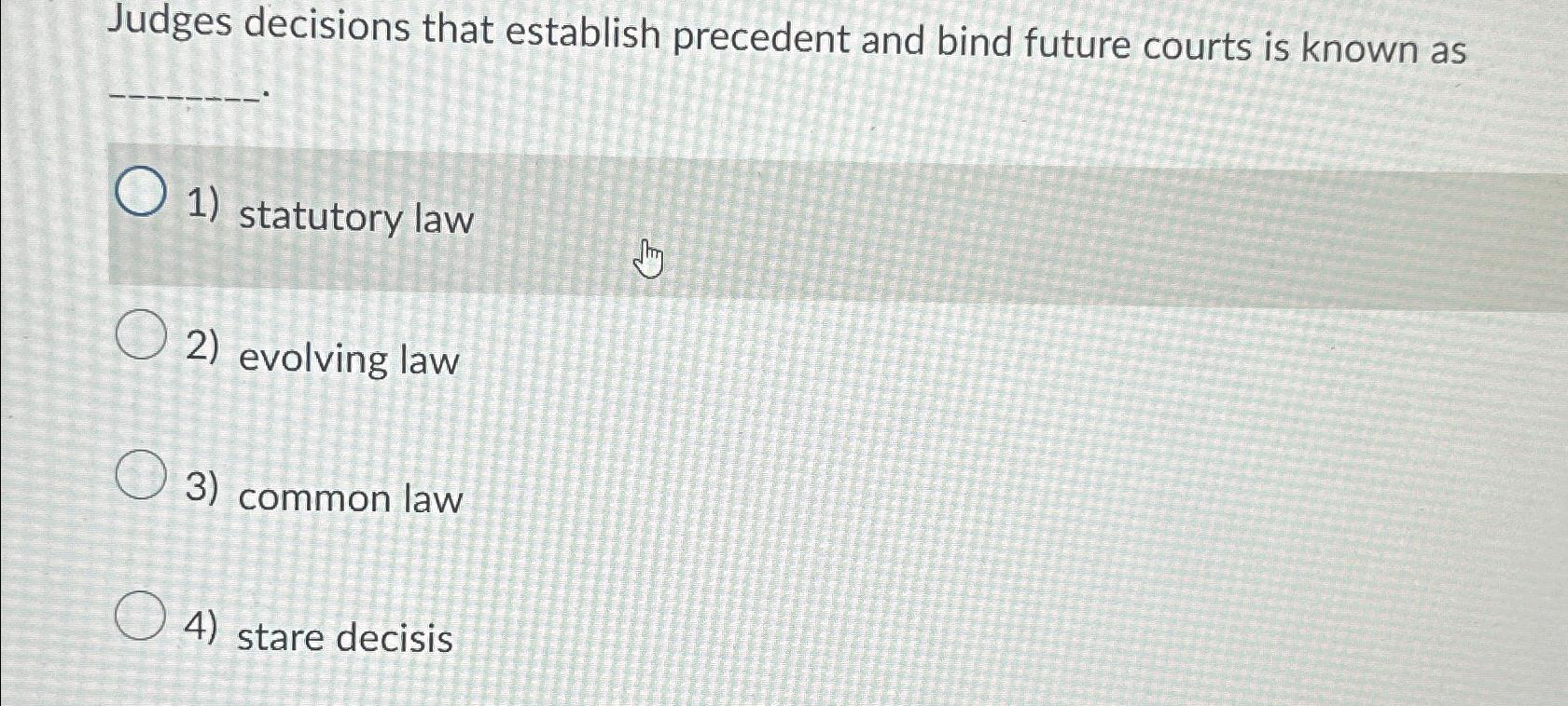 Solved Judges decisions that establish precedent and bind Chegg com